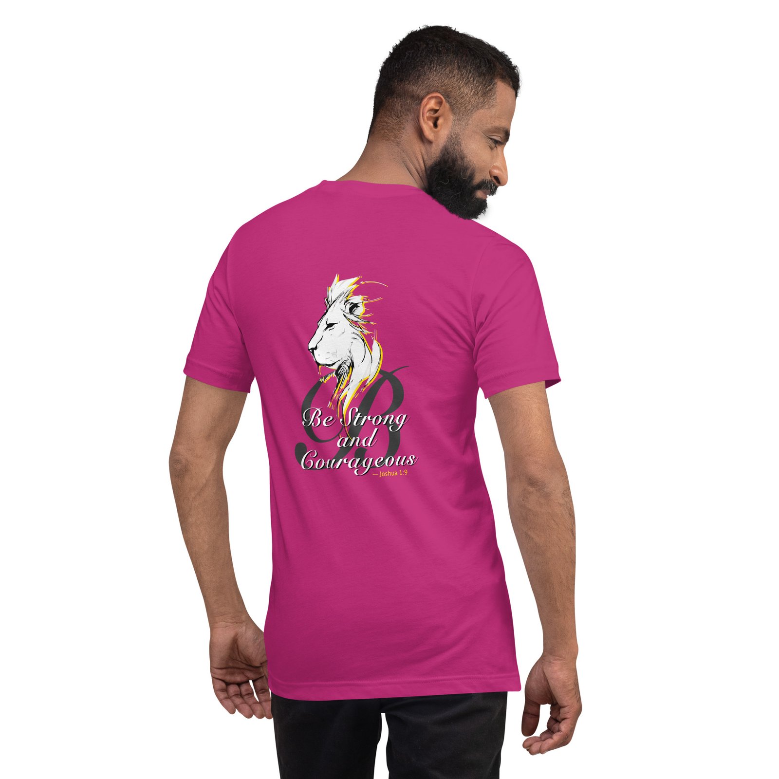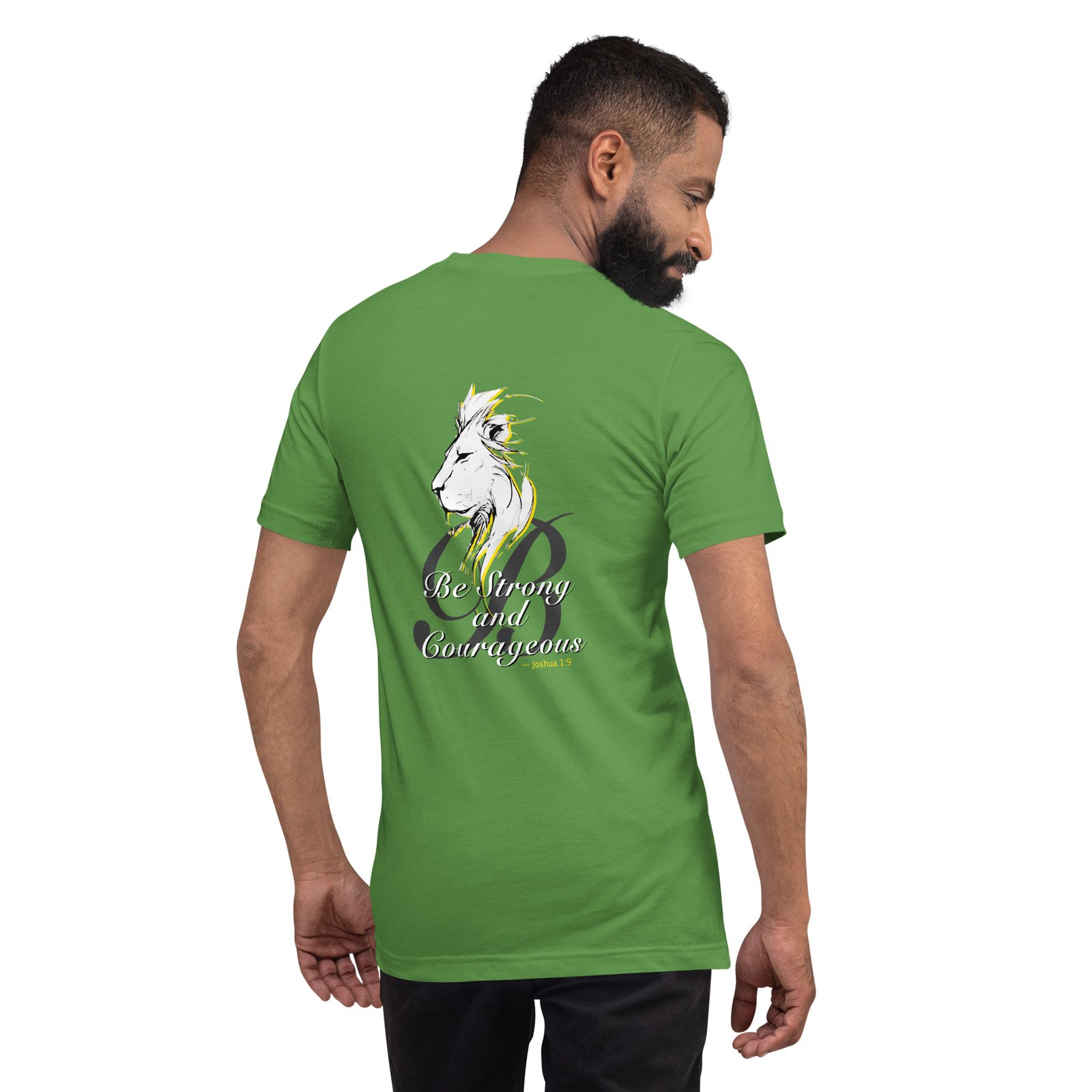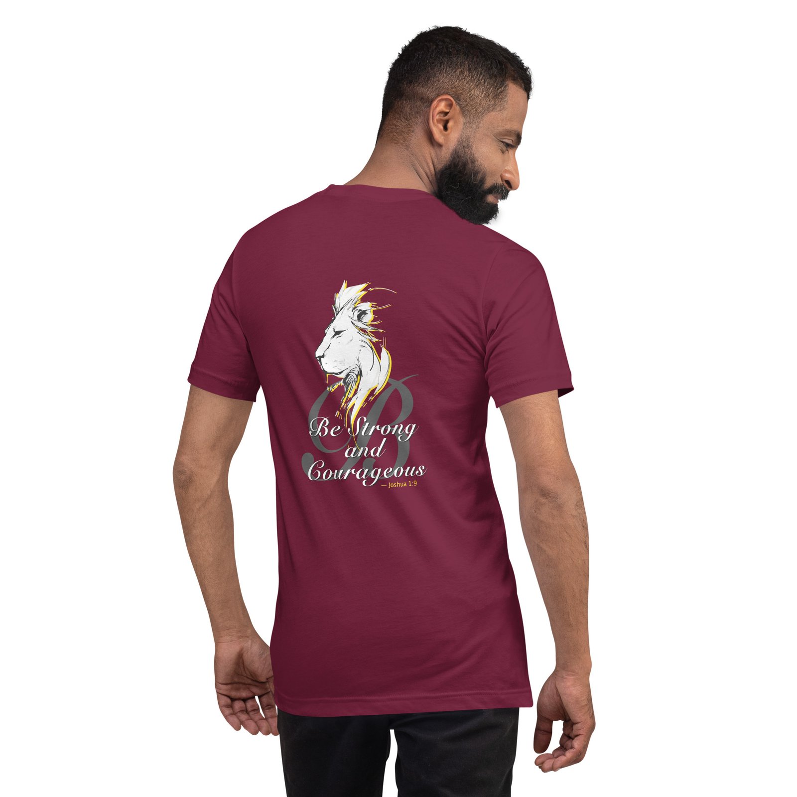 On the back: a powerful lion and the words “Be Strong and Courageous, – Joshua 9.1” – as a daily reminder of who you are. It feels soft and lightweight, with the ideal amount of stretch.